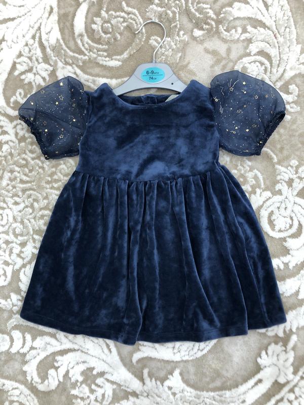 Новое вытонкое, велюровое платье для маленькой принцессы. На возраст 6-9 м (74 см)