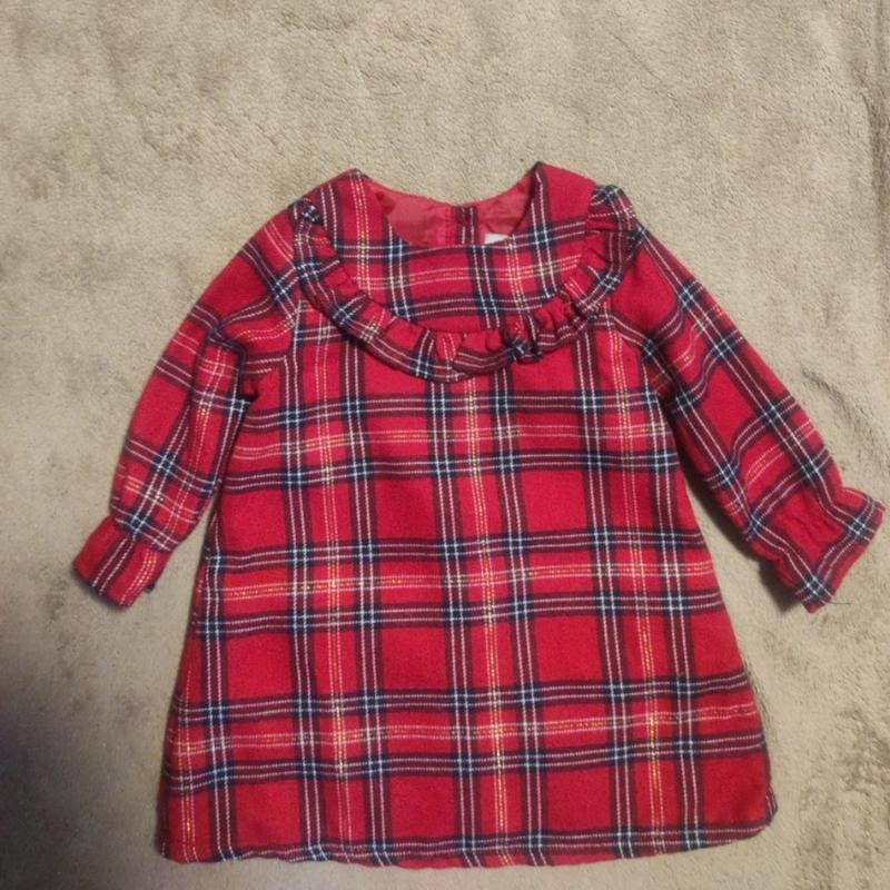 Теплое платье на маленькую девочку. Ткань с люрексом,на подкладке Новая, без бирки. Рост 68 см.