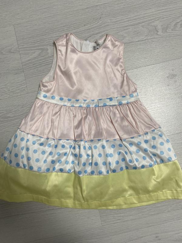 Чудова сукня для маленької принцеси. Матеріал схожий на атлас, всередині підклад із бавовни. Сукня легенька та дихаюча. Стан - новий. Якість супер Рлзмір вказано 18 місяців, приблизно 80-86 розмір