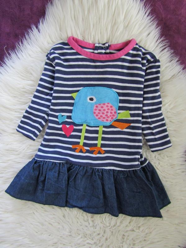 Платье трикотаж,оборка джинсовая 12-18мес.,большемерит,рукав от горла 30(22), шир.29, дл.43(31), сост.отличн.