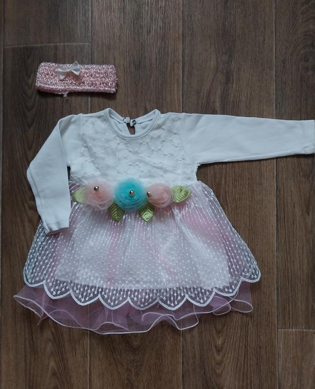 Платье на девочку, в идеальном состоянии. 62 размер. Вдягали один раз. В подарок повязочка.