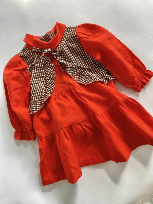 Яскраво-червона сукня для принцески🌸 Ткань очень мягкая и приятная Воротничок-стиечкой Желетка пришита к платью: спереди и сзади завязывается на бантики! Размер: 80-86 Одевали в год на фотосессию