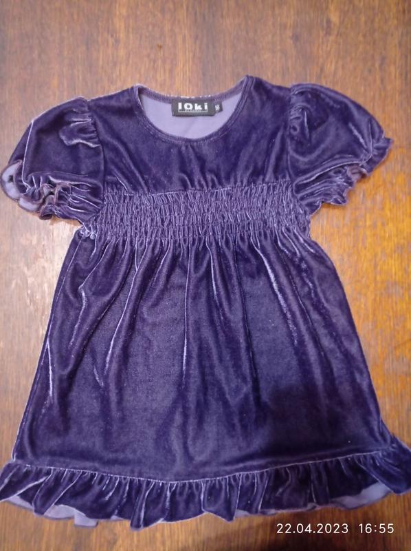 Минимальный заказ у продавца на 100 грн. Велюровое платье Loki фиолетового цвета в отличном состоянии на ребенка 12-18 месяцев. Длина изделия по спинке 45 см, ПОГ 26 см. Ткань тянется. Модель 2105