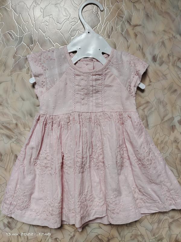 Легкие, нежное и красивое платье для девочки. Ткань очень приятная, легкая, натуральная. По наборке 3-6месяцев, но будет дольше