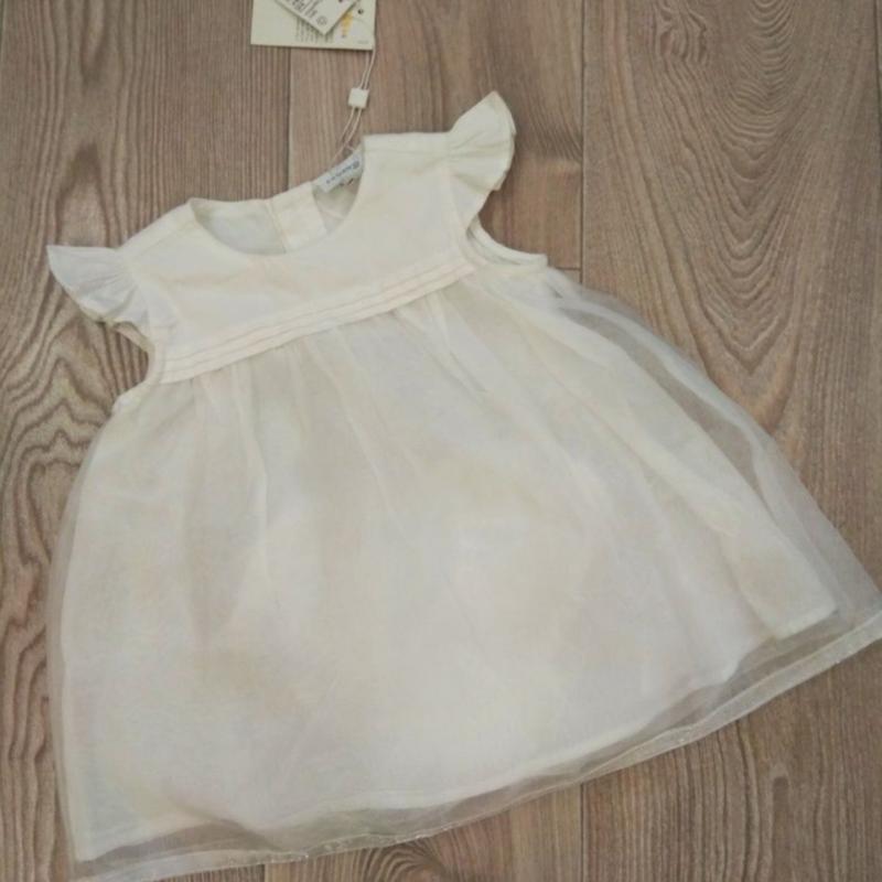 Гарне плаття для дівчинки. Білого кольору. Нове, з дефектом (дефект показано на фото, його майже не помітно). На 6-9 міс.