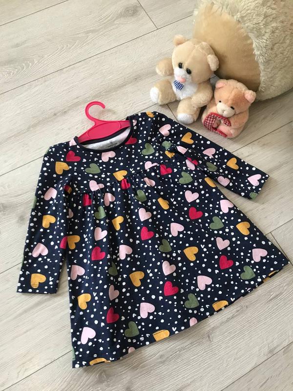 Платье в сердечки и горошек для девочки бренда Mothercare На возраст: 12-18 месяцев Состав: 100% хлопок Состояние: отличное, без недостатков