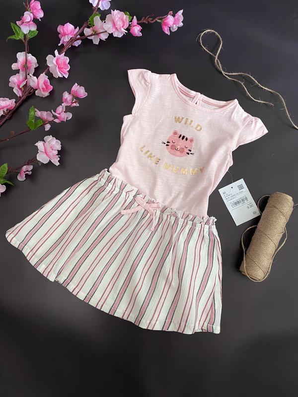 Пополните гардероб вашей дочурки еще одним платьем☺🤗 Стильное и красивое💯 100% cot. Есть 🔖 12м (80) Длина 45 Пог 23.5 Пот 26 ( резинка)