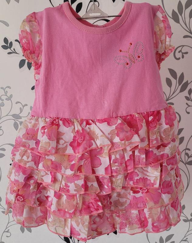 Ніжна сукня з багатошаровою спідницею, з кнопочками на спині та поясом, що дозвололить регулювати об'єм. Пошита із натуральної тканини (інтерлок+шифон) Розмір: рожева сукня 52 (ріст 86-92 см) червона сукня 56 (ріст 92-98 см)