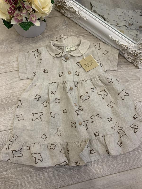 Льняное платье для маленькой принцессы от бренда play ap Застегивается на пуговицы Очень стильная и крутящая Размер 12 месяцев