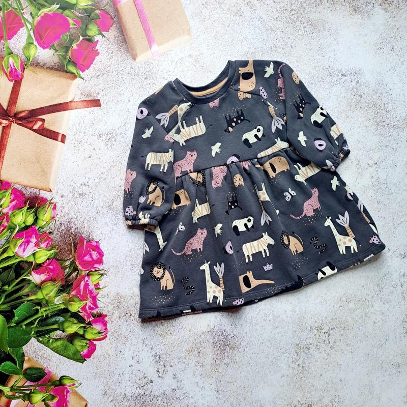 Теплое платье со зверушками на 1,5-2 года Состояние красивое Шир 30 Длж 48 Рукав 35