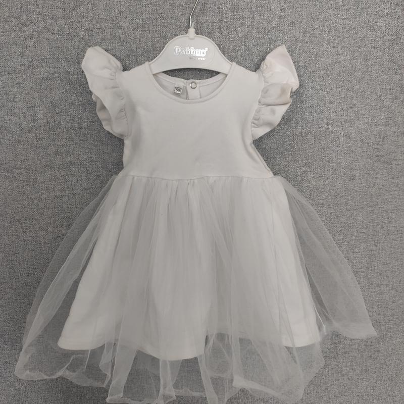 Платье 68 размер, а болеемерит, тем более можно надевать и позже.