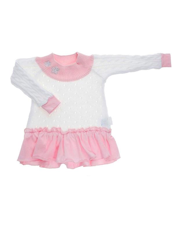 Комбинированное платьице - вязка+трикотаж, легкое, хлопковое - для маленькой девочки на теплую весну-лето. Размер: 74 (9мес) Замеры: длина 31см, ширина 21см, рукав от шеи 28см.