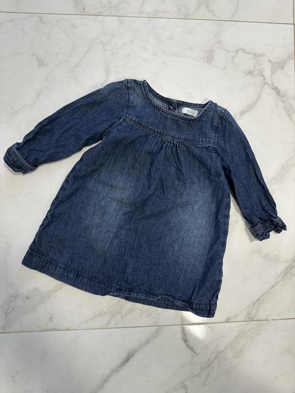 Стильное джинсовое платье next на 9-12 мес, темно синего цвета, состояние идеальное