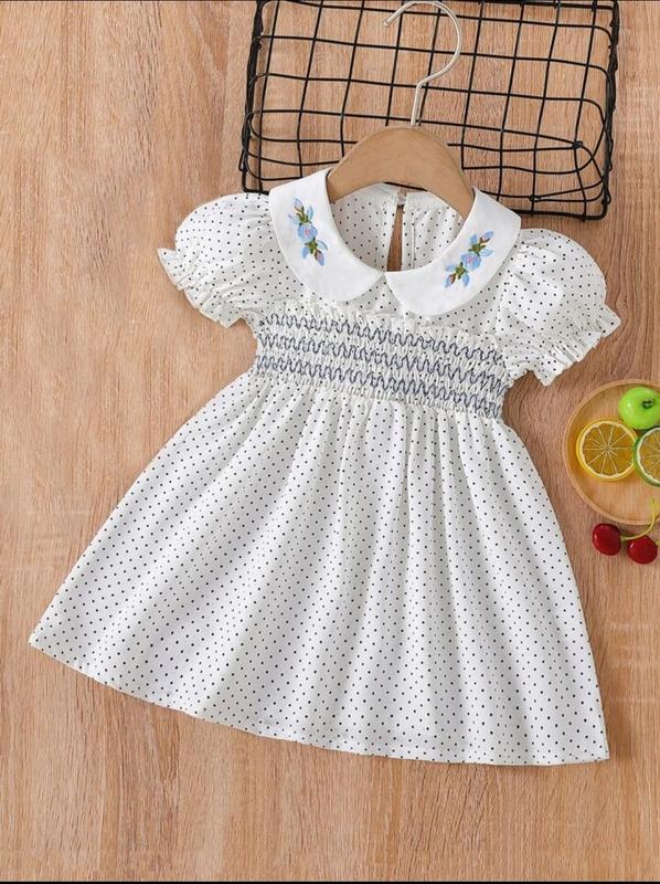 Отличное платье в горошек с вышитыми цветочками. Рост 86 см. Длина 45 см, пог 25 см (резиночка-хорошо тянется).