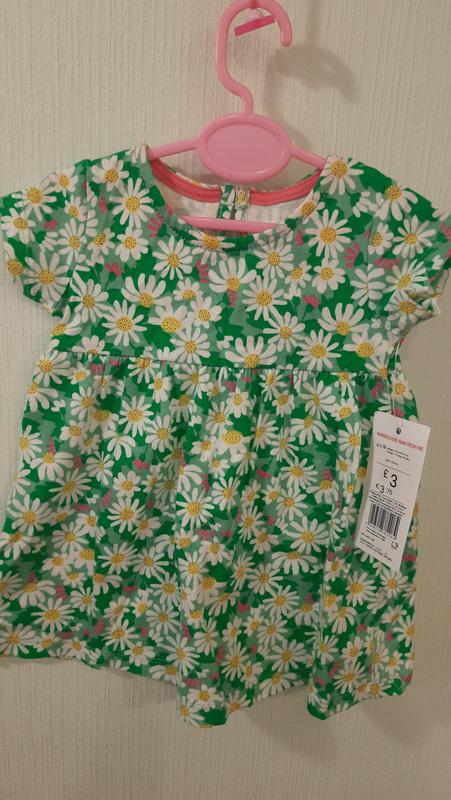 Новеньке яскраве платтячко на дівчинку від 0-3міс. Довжина по спинці до низу 33см, ширина під пахвами 22см.