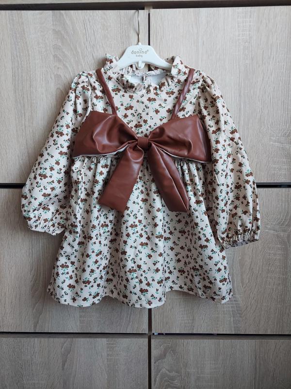 Платье с бантом на груди. Длина 40, пог29, рукав от горла 31 на 74-80