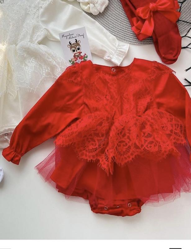 Боди платье из ажура и фатина. В комплекте гольфы с бантиком и повязка на голову. Заказывали на подарок, не подходил размер( маломере)