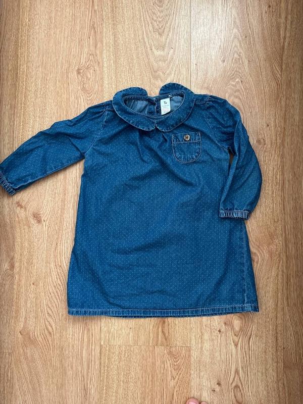 Джинсовое платье в мелкий горошек TU. Тонка тканина . Декорирована кармашком спереди. Сзади пуговицы. Стан - идеальный Размер указанный 18-24 мес, 86-92