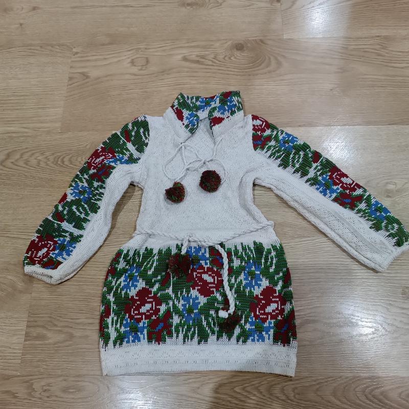 Очень милое платье вышиванка для девочки на рост от 86 см. Но можно и как свитер где-то к содержанию 102. Надели на праздники несколько раз, состояние идеально. Пояс снимается. Приятное на ощупь, типальное. Гарно преться. Подробности в сообщение.