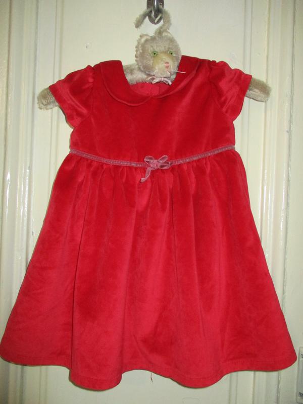 платье бархатное.красного цвета.полиэстер.ПОГ 26.ПОТ 23.длина 44см