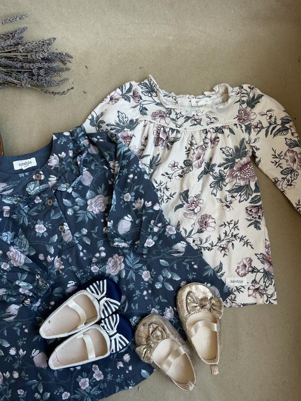 Набор платьев, newbie, состояние идеальное, к новому: розовая 4-6 мес/ молочная и синяя на 6-9 мес.