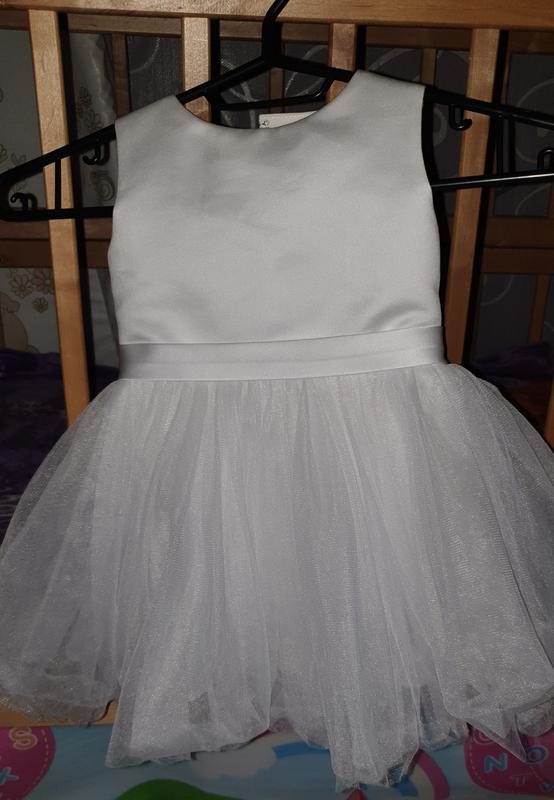 Святкова сукня із королівського атласу та пудрової сітки для справжній маленьких принцес. Виріз на спинці у формі серця та пишний бант додають особливого чарівного вигляду малечі. В сукні зручно вільно рухатись, завдяки крою, який не обмежує рух активної дитини. На зворотньому боці бантика є невеличка затяжка.