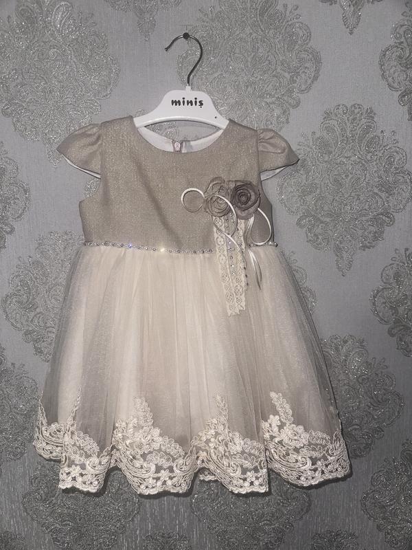 Нарядне плаття для дівчинки на 12-18 міс, гарно переливається на сонці, бантик і квіточку можна відкріпити