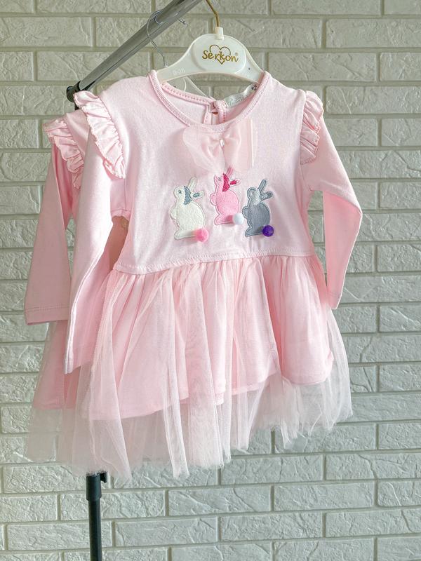 Це плаття - сама ніжність для вашої донечки. Плаття розщіпається ззаді, низ пошитий з котону і шару фатіну, має декоровані рукавчики рюшами, що в свою чергу придає ще більшої мімішності. Тканина: 100% коттон 📌Розміри: ✔️ 6-12міс(74см) Заміри: довжина 33,5см, ширина 23,5см, рукав від плеча 24,5см. ✔️ 18-24міс(86см) Заміри: довжина 39см, ширина 22,5см, рукав від плеча 24,5см.