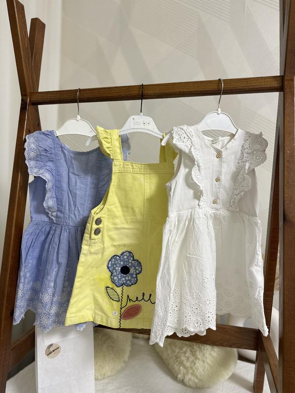 Платье на 18-24мес. 1. Белая из прошвы. Имеет пятна на спинке (при носке не очень заметно). 50грн. 2. Желтый джинсовый сарафан. Извлекись цвет, из-за этого есть пятна более насыщенные или менее. При носке смотрится красиво. 60 грн 3. Голубое нарядное платье с красивой спинкой. Идеал. 180грн