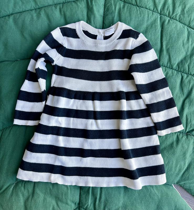 Черно-белое теплое платье в полоску. Размер 6-9 месяцев.