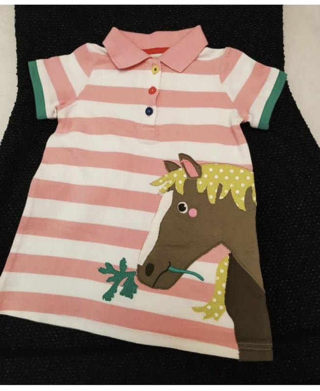 Детское платье поло Mini Boden. 1/5-2роки. На платье аппликация лошадки. Супер! Длина по спинке 42см Плечи 22см Ширина между подмышками 28,5 см К низу расширяется.