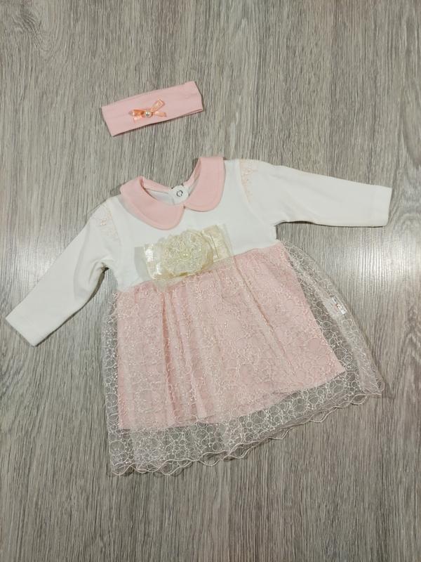 Нежное платье с повязкой для девочки. Цвет персик. Размеры: рост 62 см - ширина плеч 19 см, длина рукава от плеча 19 см, Пог 22 см, длина платья 33 см. Производитель Турция. Цена 250 грн.