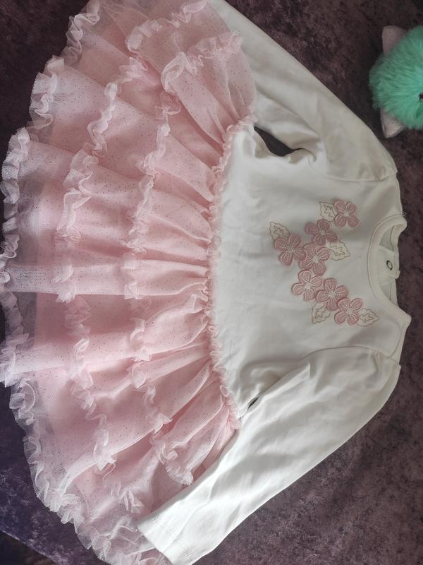 Невероятно нежное платье для девочки, размер указанный 18 М, но подойдет на 1 год.Замеры : длина 37 см, пог 25 см, рукав 28 см