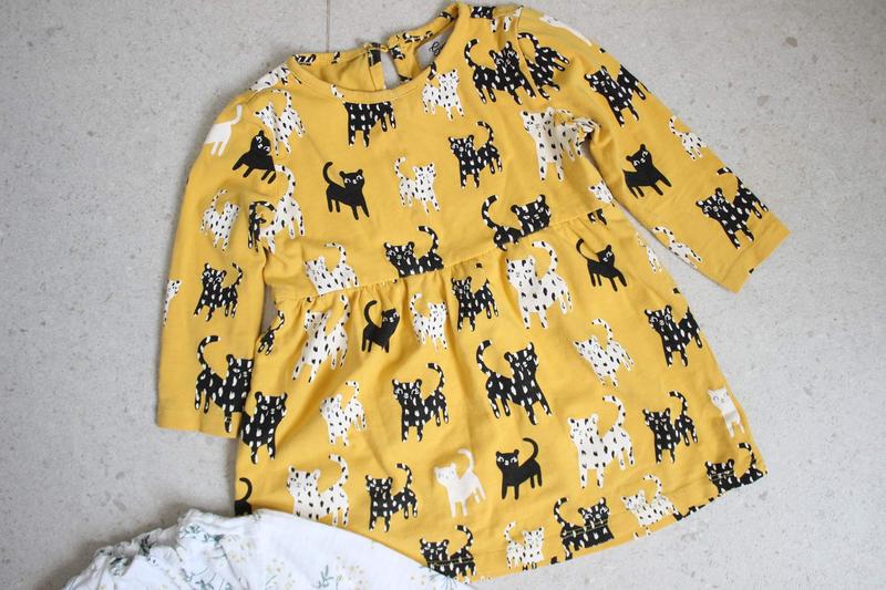 Жовта сукня в принт «кошенята» Размер 80 (9-12 мес) Длина 41 см Рукав 25 см Стан очень красивый, носили немного Ткань легкая и мягкая, идеальная на теплую осень.