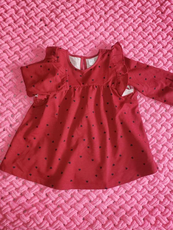 платье на девочку бордовое с сердечками, размер 86-92, коттоновое, тоненькая баичка, широкое.