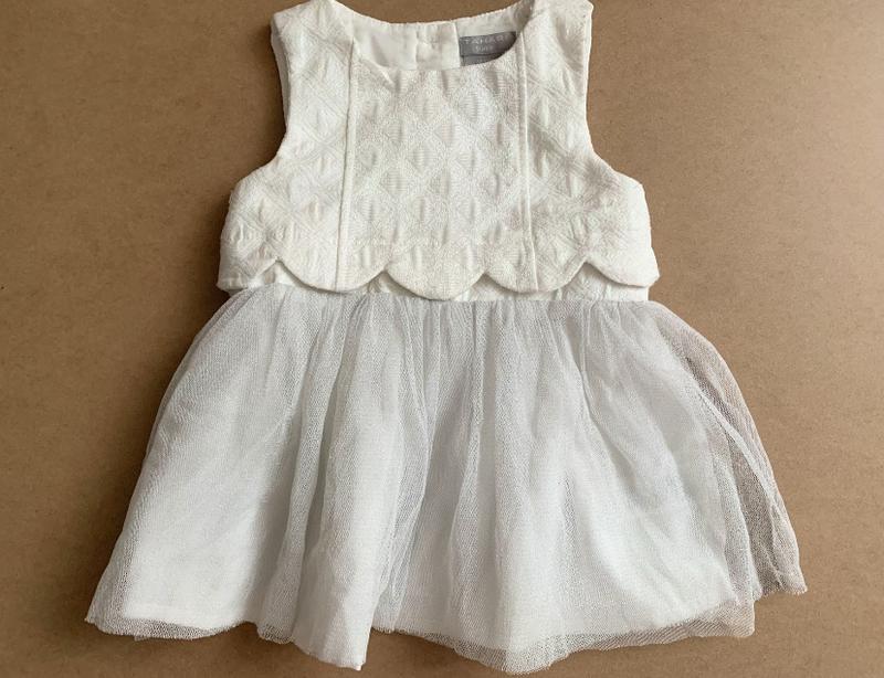 Белье платье, размер 9-12 месяцев, но носили с полугодочки. Праздничное и очень красивое.