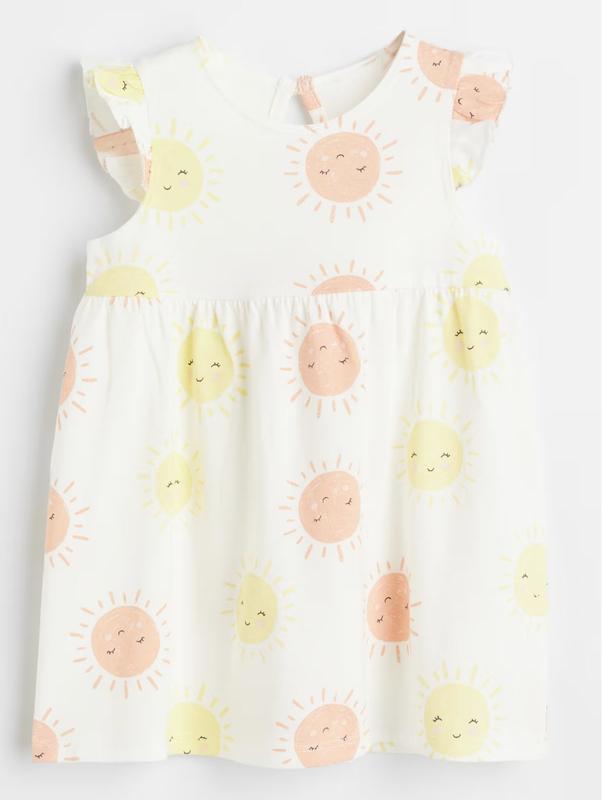 Размер eur 80,9-12 мес. Платье без рукавов из мягкого хлопкового трикотажа с небольшим отрезком и пуговицей сзади на шее. Воланы спереди, которые продолжаются на плечах и вниз по спине, собранный шов в верхней части и расклешенная юбка. Новое, без нюансов, в носке не было, без бумажной етикетки.