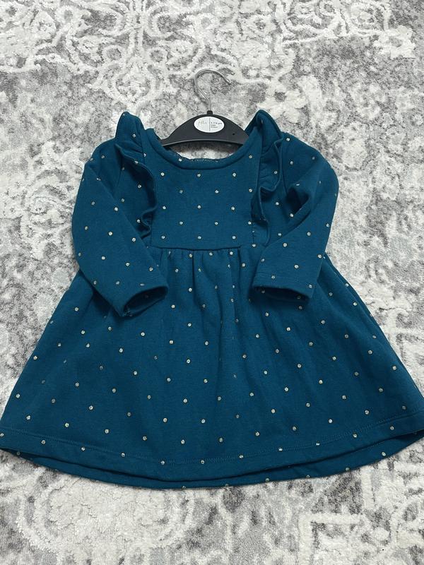 Зеленая с золотыми точками. Теплая,с флисовой подкладкой. Отличный наряд на Новый год