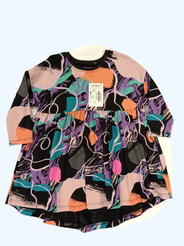 Платье Next для девочки 12-18 месяцев 100% хлопок, черная с цветным принтом, с длинным рукавом, удлиненная юбочка сзади. Страна регистрации бренда: Англия