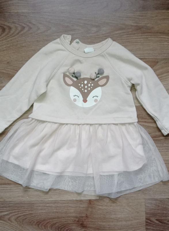 Теплое платье в отличном состоянии с милым оленем H&M. На возраст 6-9 мес, если в виде туники будет дольше.