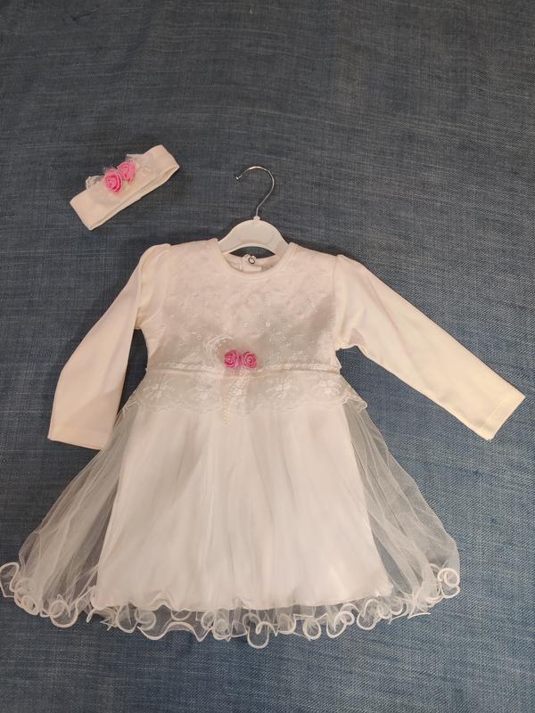 Платье для девочки праздничное, с повязкой. Размер 86. Состояние новый одевалась один раз. Замеры рукав 27см, в плечах 20см, от плеча до низа 44см