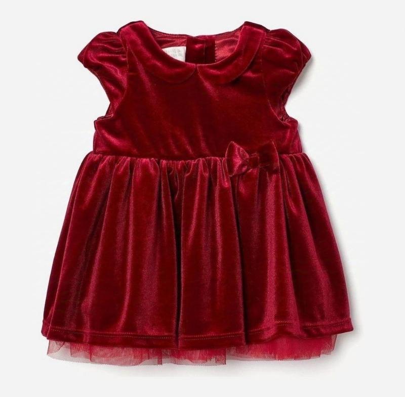 Платье из мягкого велюра с пуговицами сзади и короткими рукавами-фонариками. Собранный шов с бантом вверху и юбка с двумя слоями фатина внизу. На подкладке ,h&m Размер по набору 86 см 12-18 месяцев Идеально для празднования первого рюмка