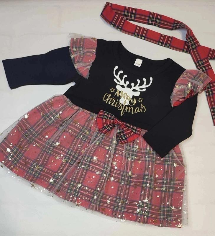ЦИНА - 800грн 🔹Удивительное платье в Новоричной тематике!! 🔹Верх – плотный трикотаж, верхний слой юбочки – евро-сетка, украшенная блестящими звездами! 🔹Повязочка в цвет в комплекте!! 💫Замеры (длина/ширина в поясе/рукав) 0-6 - 39/26/23 6-12 - 40/27/24 18-24 - 45/30/27 ▪️N-05