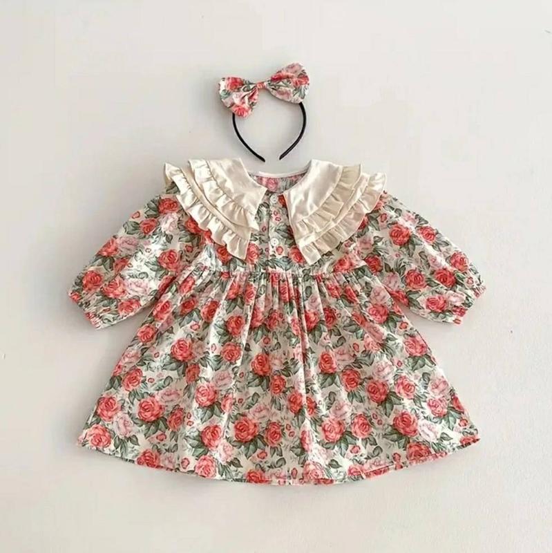 🌹 отличное детское платье 🌹 материал хлопок обруч в комплекті свободного кроя застегивается на пуговицы на рукавах резинки Код: 21 ЗАМІРИ длина/полуобхват груди/рукав от плеча ✅9-12м 49/29/28 ✅2-3р 56/32/32 ✅3-4р 60/33/34 🧸Цена 650грн