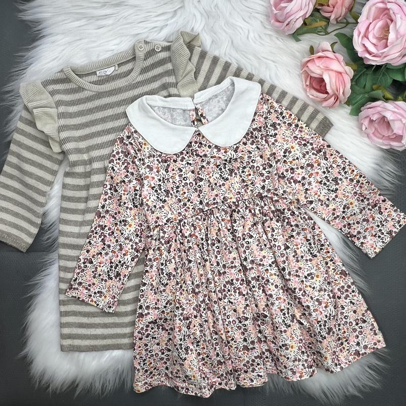 Фирменные стильные платья 12-18 мес, 80-86 см В полоску вязаная, с воротничком обыкновенный 🚘отправка НП 💳набор 385 грн