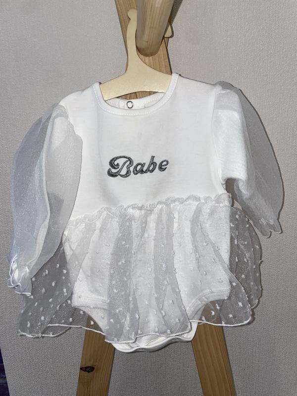 Нарядное платье-бодик белого цвета, состояние идеальное (одевали один раз на фотосессию), размер 62
