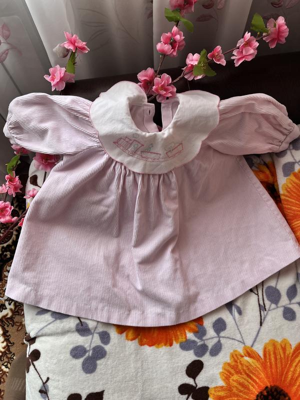 Розовое платье с белым воротничком,рукава 2/4(б/у)в красивом состоянии Тканина вельвет Время года-весна-осень Длина платья от воротничка 38,5 Платье свободного кроя