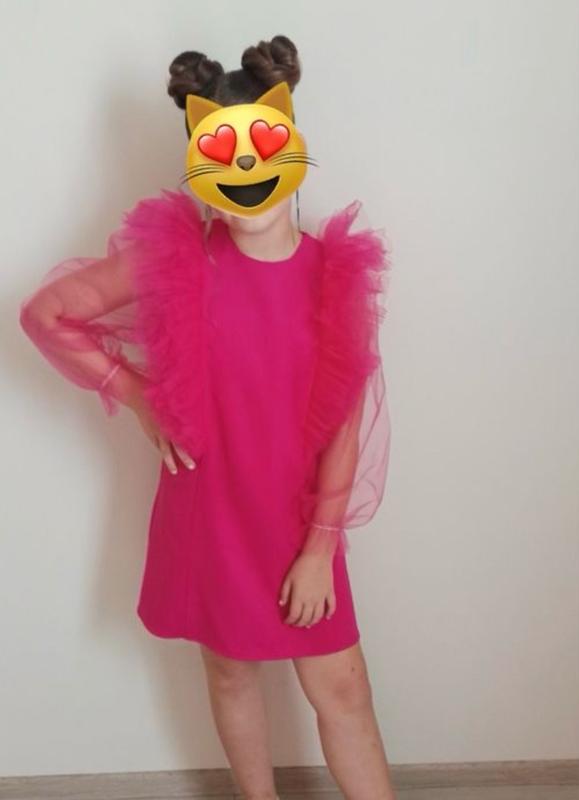 Очень стильное платье с фатином, насыщенный розовый цвет, размер 146 Ширина 41см Длина 74см Для празднования дня рождения и любых других событий, одетая один раз,