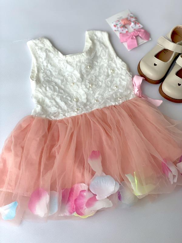 Дуже гарна сукня для дівчинки на рік приблизно. Пелюстки ворушаться при русі, колір ніжний рожевий, бусинки не приклеєні а на закльопках тримаються тому точно не відпадуть. Всі фото мої реал Довжина 45, груди 25