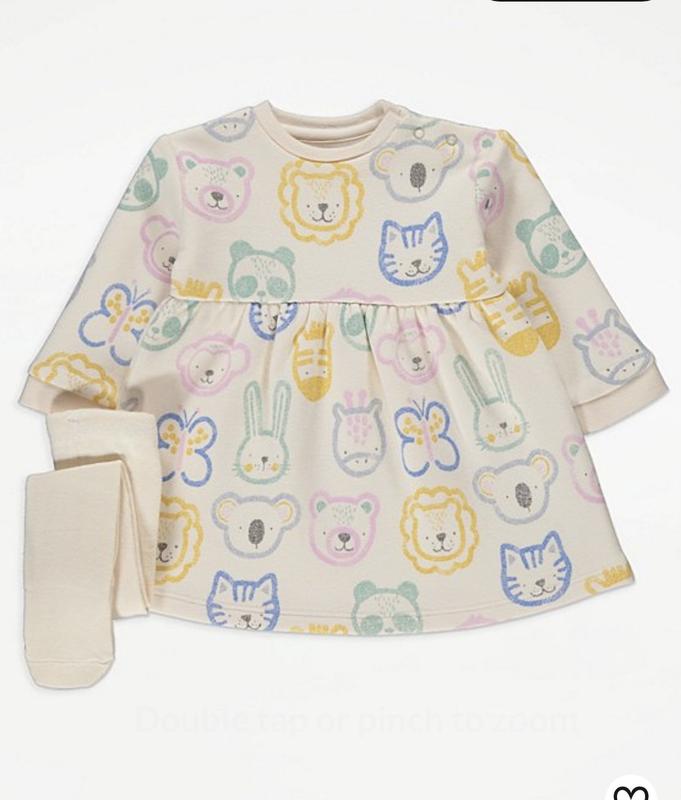 Милое утепленное платье от бренда George, красивый бежевый цвет у зверушки, размер 9-12умесяцев, состояние новой